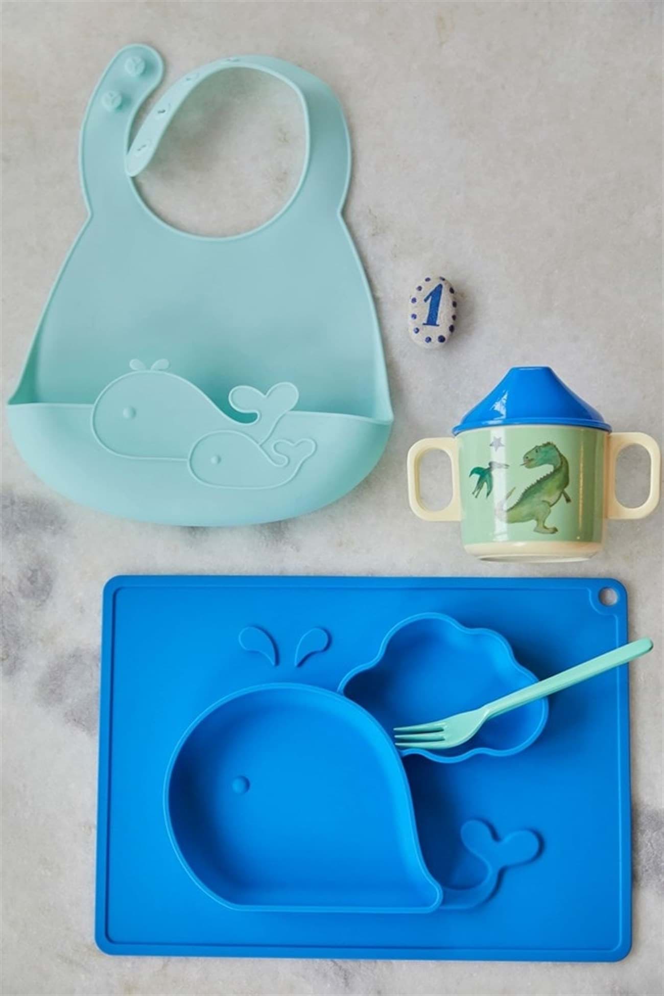 Silikon Bebek Önlüğü - Mavi Balina resmi